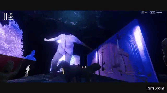 Working with Chinese Arts Now I helped conceptualise and create a 3D world where audience members could log in as avatars and interact with each other while experiencing a piece of online theatre. This was built in Unity for WebGL, networked using a dedicated server in EC2 and delivered using CloudFront and S3. A lot of work was needed to adaptively stream and add effects to the videos while optimising performance. I was part of the creative team arranging audio and visuals and adapting the visual style while developing the various interactions and lighting design.
